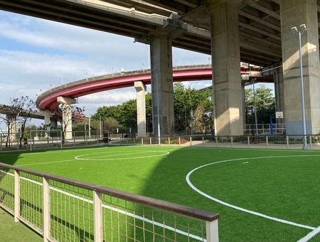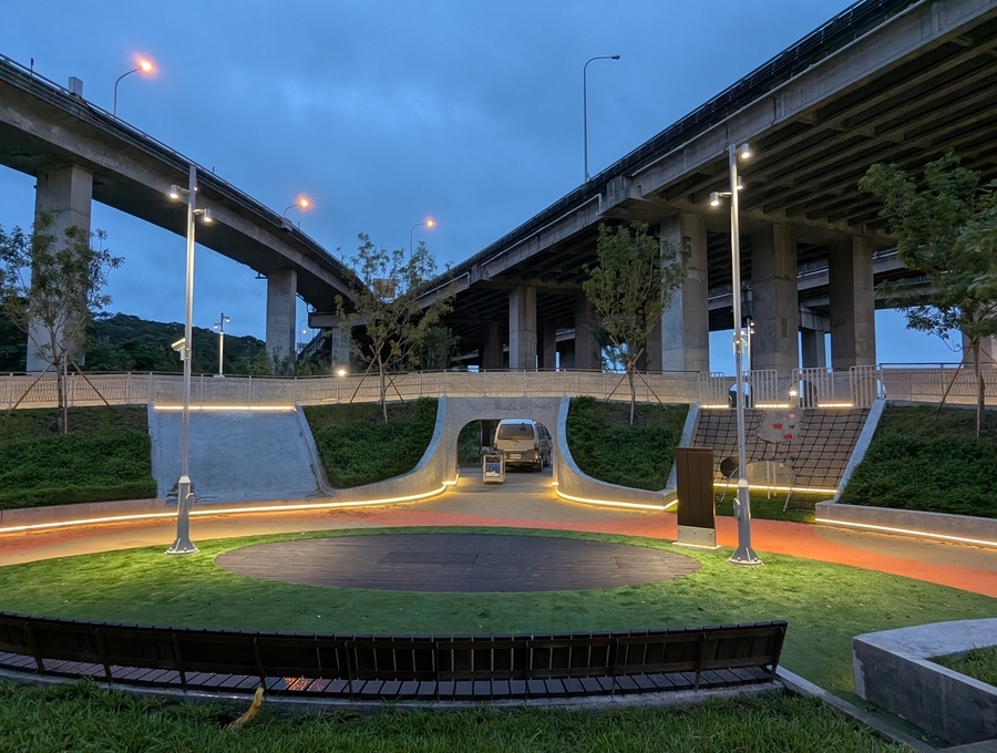 不只如此,這裡也貼心設置了休憩涼亭、舒適座椅,以及避暑遮陰設施,方便家長陪伴放鬆;挑戰區旁邊還有多功能草地空間,適合進行小型球類活動或野餐,整體規劃兼顧遊戲性與公共舒適。