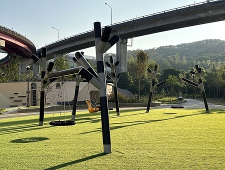坐落於平鎮區快速道路節點的平鎮運動公園,是都市中難得的大型綠地空間,而其中位在公園南側、全新啟用的「陸空探索遊戲場」,正是親子家庭放電、放鬆的理想場所。