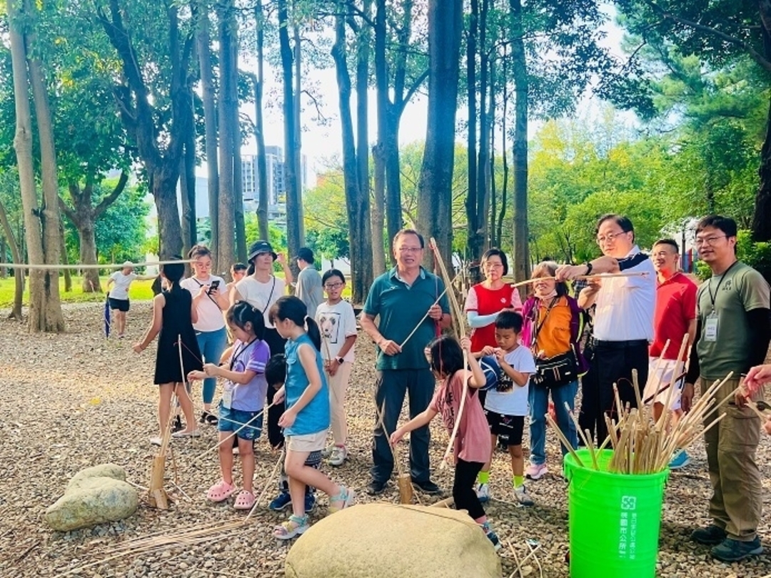 桃園市市長張善政今(24)日前往八德區大湳森林公園,出席「自然遊戲推廣活動」,活動吸引許多親子家庭報名參與,現場氣氛熱絡。