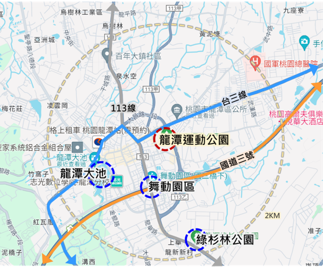 另為提升龍潭區的公共運輸服務,桃市府已規劃短、中、長期的轉運策略,以逐步完善轉運設施布局。短期以龍潭運動公園微型轉運站為核心,設置長廊式候車亭,整合國道與市區客運,涵蓋台北、松山機場、板橋、竹東、新竹、台中及六福村等主要路線合計每日提供133班次;市區客運服務土城永寧、桃園、中壢、平鎮、大溪及804醫院等地區合計每日運行195班次,並配有YouBike站點及停車場,方便民眾轉乘。中期則規劃龍潭先導轉運站,參考八德轉運站模式,設置6個月台與約123格機車停車位,提供舒適便利的轉運空間,預計於114年7月動工、115年10月啟用。長期規劃將結合大昌路整體開發區都市計畫,打造更完善的公共運輸系統,滿足區域居民的多元交通需求。