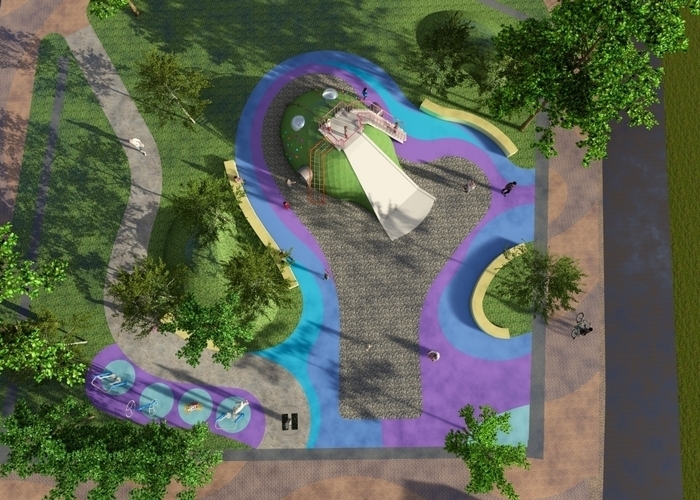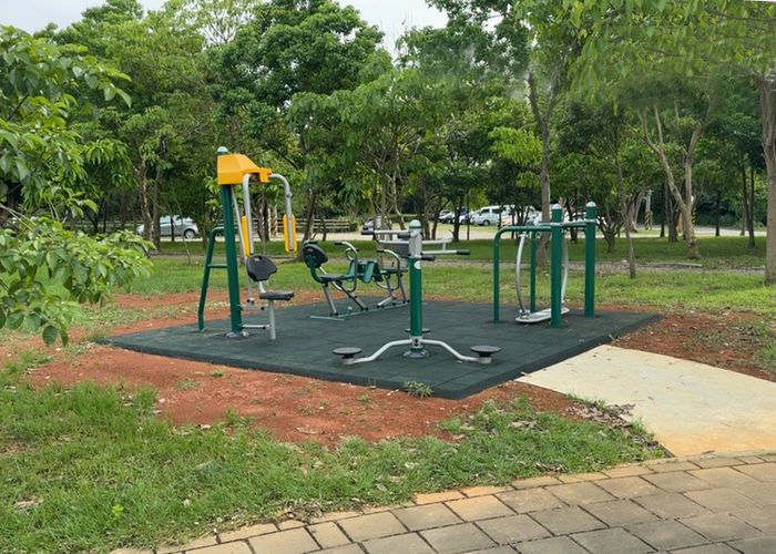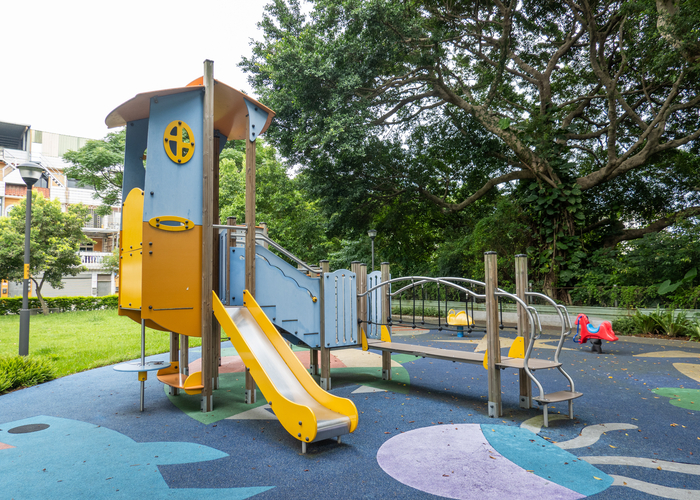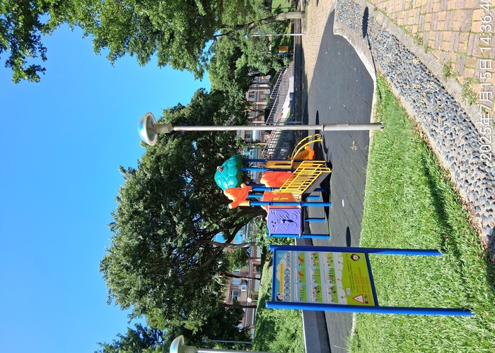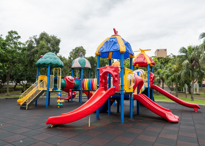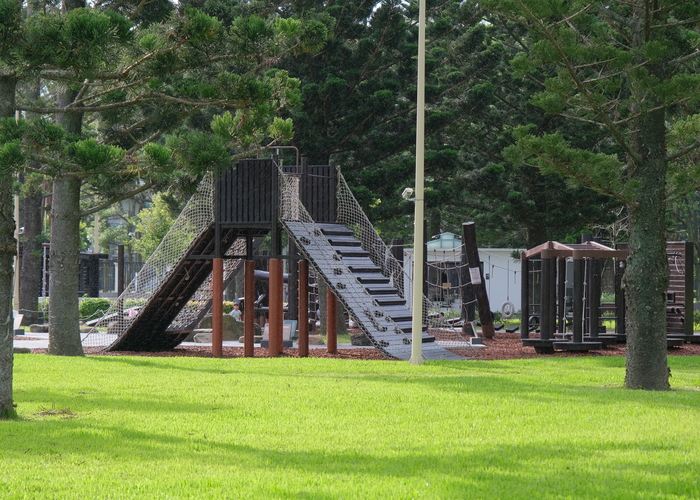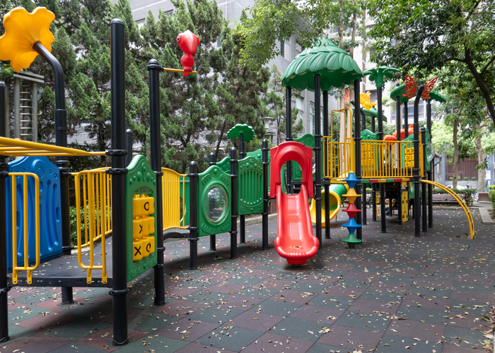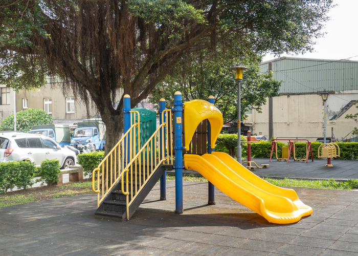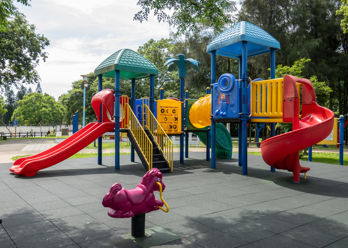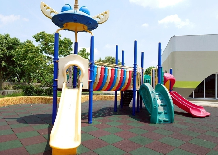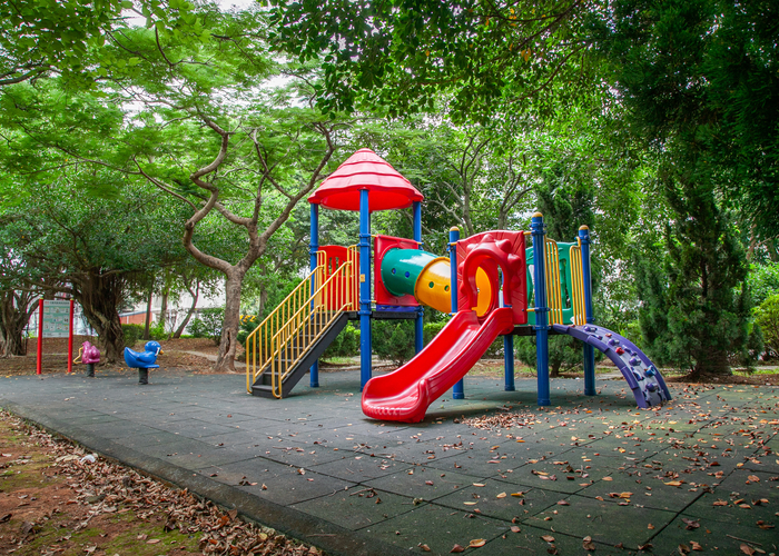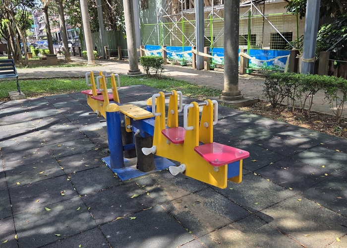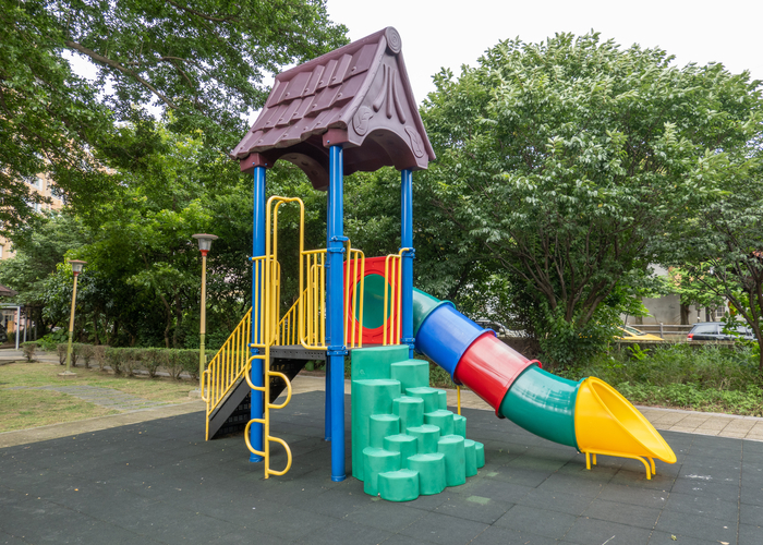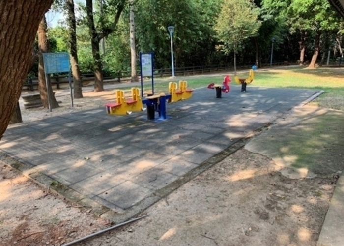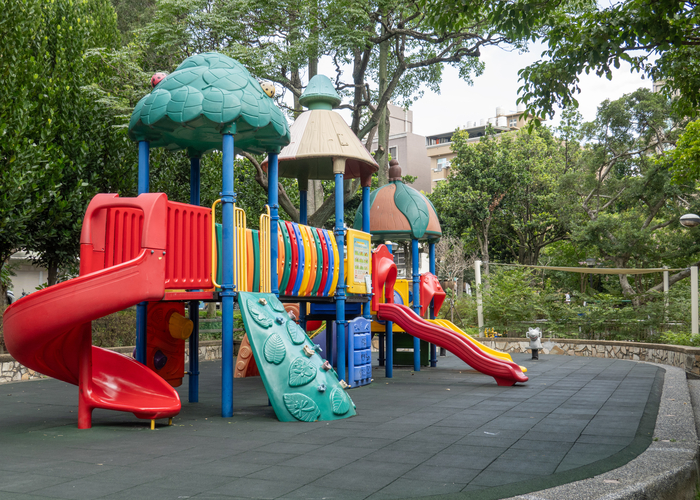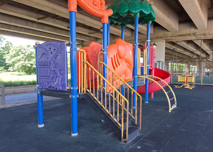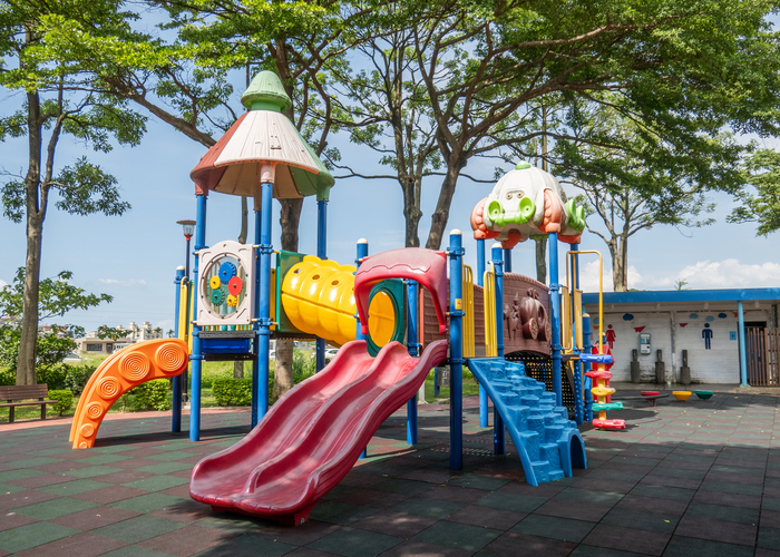 海洋風的兒童遊戲場,其中3米高的彩繪造型山丘在遊戲場內格外顯眼,魚兒身旁游還有彩色海龜作伴,彷彿置身海底世界!坐上溜滑梯滑入白沙坑,迷你挖土機、玩沙平台,滿足孩子的玩心。公園內除了設有常見的鞦韆,還有一組可360度旋轉的鞦韆,能讓孩子即刻變身小飛俠,享受乘風之樂。