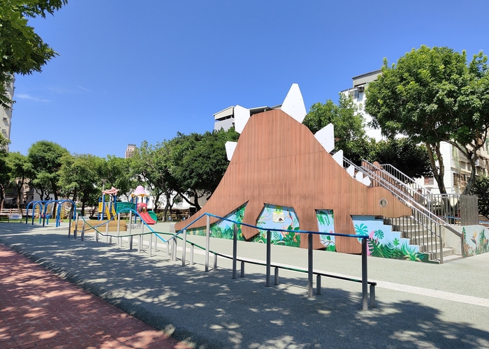全國第一處以長頸鹿為主題大型遊戲塔之特色公園。設計特色以當地居民口中「城市動物園」為發想,在大草原及現有樹群中,隱然看見長頸鹿在城市駐足觀望,同時輔以最高16M之滑梯及空中懸空式爬籠,提升孩童遊玩體驗,滿足不同年齡層的冒險體驗。