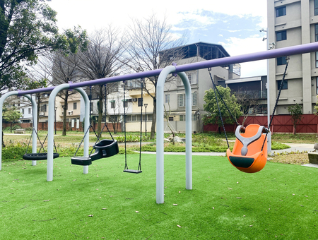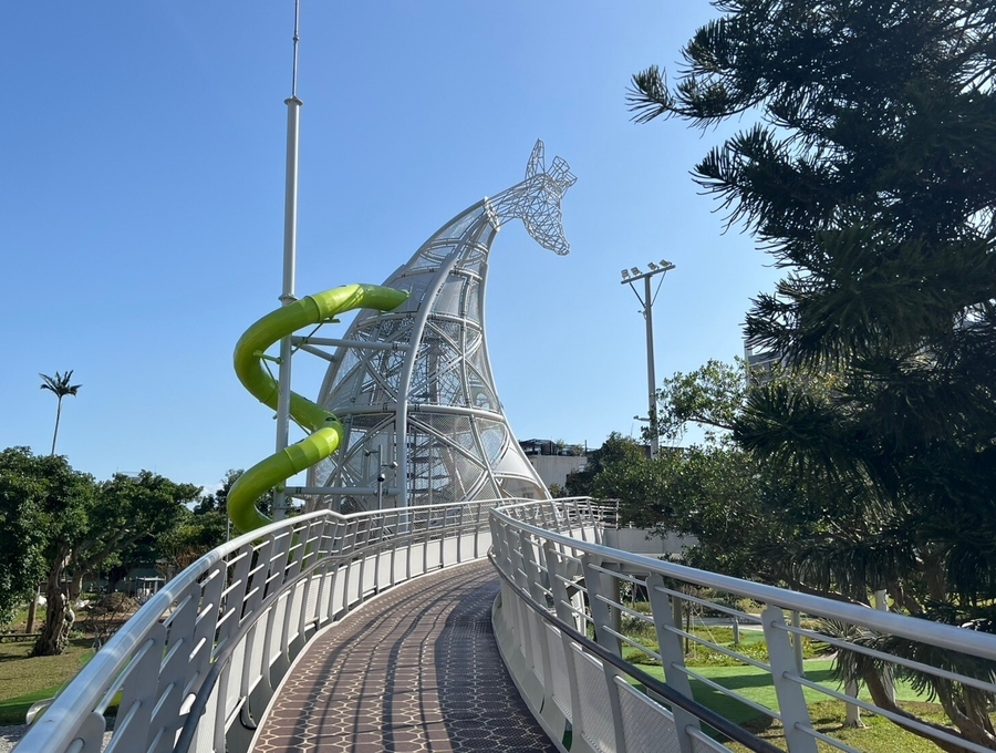 公園共分為4個主要分區,長頸鹿遊戲區:依不同樓層及遊戲難易程度分為5~12歲、13歲以上之遊戲屬性。並藉由空中棧道提供孩童不同視野與遊戲體驗,並與長頸鹿連結。生態遊戲區:以生態池與森林水道和周邊相鄰農田,打造一處生態遊戲天堂,讓孩童在盪鞦韆遊戲時與飛鳥同行。銀青共樂區:設計以銀髮族為主體的活動區,讓爺爺奶奶陪著孫兒在鳥語花香的環境裡,一起遊玩。大草坪區:是全家人一起野餐、奔跑、放風箏最佳的場域。
