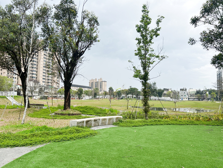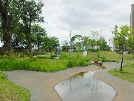 全區並以都市防災概念,將大草坪區作為都市重要滯洪池,生態雨水儲留池並作為都市物種臨時避難場所,是一處連結都市生態系統之特色公園。