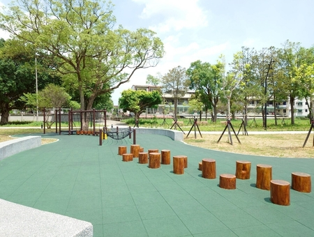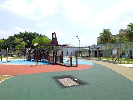 傘儲庫公園位於原日治時期軍事設施「傘兵儲備庫」舊址,是一座別具歷史與教育意義的主題性綠地。公園以「傘兵訓練課程」作為設計靈感,將過去軍營的嚴謹訓練轉化為趣味性的遊憩設施與開放空間,不僅讓遊客得以休閒遊玩,更能感受昔日軍事文化的精神與場域氛圍。