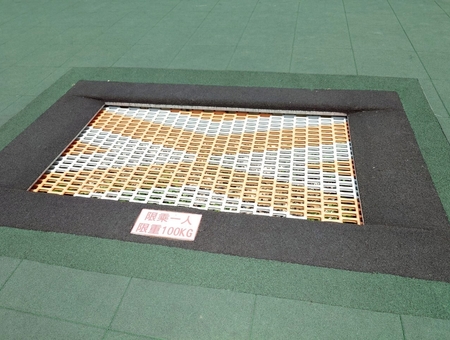 設有限重安全規範的地嵌式彈跳床,不僅讓孩子們盡情放電,也讓整體公園充滿活力與彈性動態。