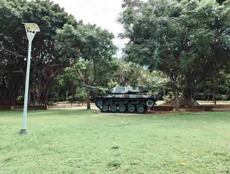公園保留了兩座碉堡、M41A3戰車、63甲式105公厘榴彈砲及崗哨等軍事設施,並加以彩繪與美化,成為富有教育意義的展示空間。碉堡內部牆面繪有當年部隊駐守時的剪影,外觀則塗上迷彩圖案,增添視覺趣味。