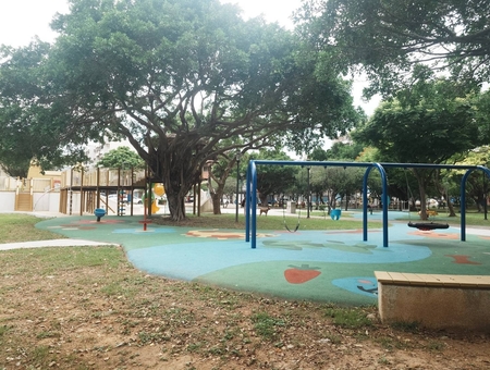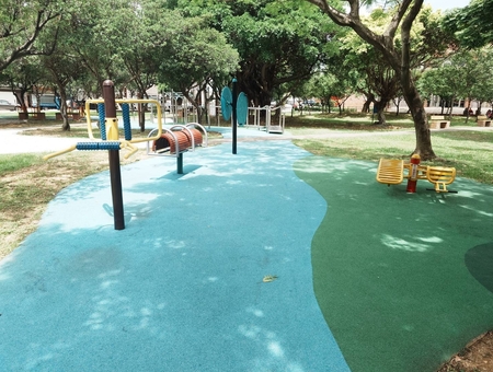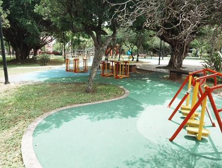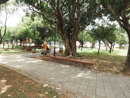 *涼亭與綠蔭:公園內有多棵枝繁茂盛的大樹,提供遮蔭的休憩空間,讓遊客在運動或遊玩後能夠放鬆休息