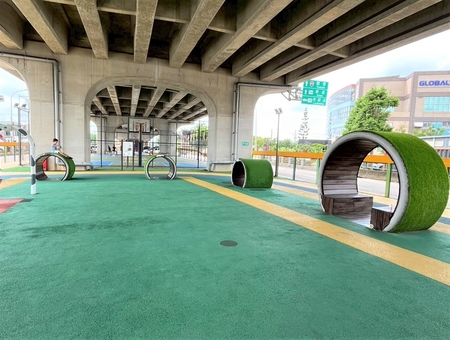 頭洲魅力公園巧妙地運用台66線高架橋下的閒置空間,不僅提供全天候遮蔽,讓遊客不受烈日或雨天影響,也透過在地農業與漁業文化為主題的遊具設計,展現地方特色與教育意涵。園內設施多元豐富,包括模擬稻田與船頭造型的遊戲區、戲沙坑、泰山溜索、溜冰場與籃球場等,適合不同年齡層孩童與青少年使用。再加上周邊設有完善的人行步道與安全圍籬,並提供免費停車空間,讓家長安心、孩子盡情放電,是一處結合文化、美感、實用性與安全性的親子友善休憩場所,深受在地居民與遊客喜愛。