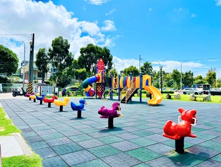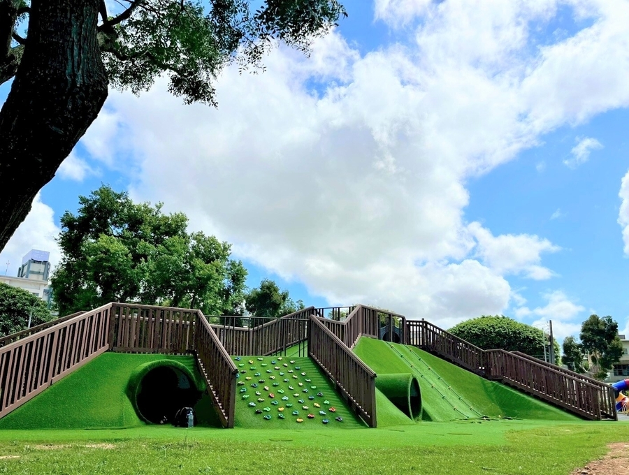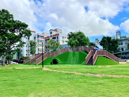 公園綠意盎然,環境開闊,適合散步、野餐與休憩,是居民平日放鬆、假日遊憩的好去處。此外,廣場也常辦理市集、親子活動與藝文演出,成為社區文化交流與凝聚的場域。整體規劃兼顧遊憩、安全與美感,不僅讓孩子放電,也讓家長安心,是結合運動、遊樂與社區活動的多功能空間。