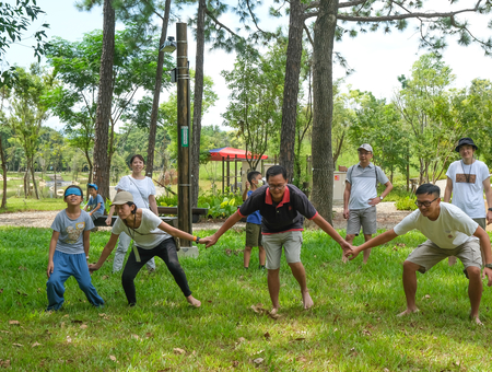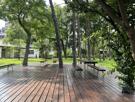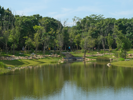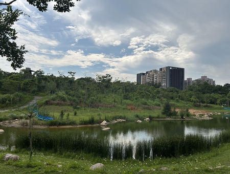 前保一營區改造,園內有大面積中央水池、小丘、森林學堂、林間草澤、蝴蝶花園等豐富自然空間,還有超過 5000 棵原先生長在營區中的大樹,為多種保育鳥類提供棲地(如黃鸝、領角鴞)。自然水域、地形土丘、樹林以及豐富的植栽種類、落葉落果提供和自然接觸的絕佳機會,歡迎一起利用公園內的自然素材或環境一起遊戲!