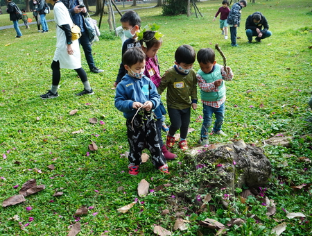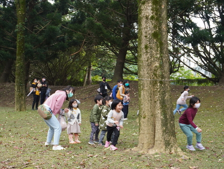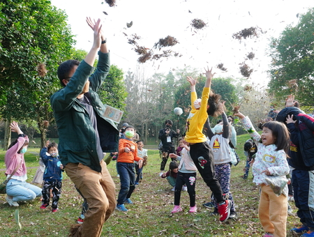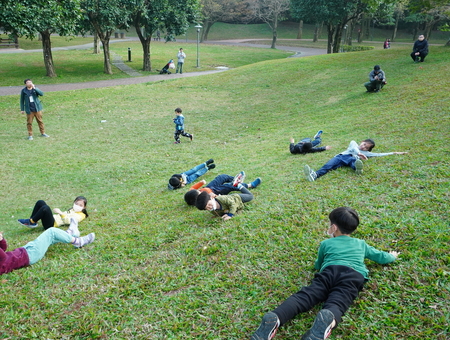跨越高速公路的雙區設計,以空中陸橋串聯。公園內有草坡、大片綠地、樹蔭道路、不同樹種的林區,可以滿足翻滾跑跳、林間嬉戲、打造自然中的秘密基地等需求。植栽部分公園種植台灣欒樹、落羽松、南洋杉等樹種,提供豐富的遊戲可能,不同的果實、葉片、樹幹等都可以成為自然探索遊戲的素材,來試試看,你可以創造出幾種遊戲?