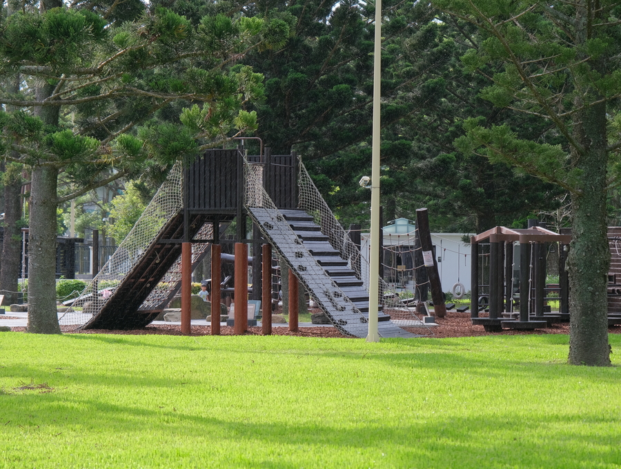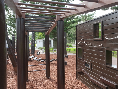 親子遊戲場設有「小小孩遊區」,將沙坑及組合式遊具整合,創造更多遊戲模式,且遊具材質都以自然元素為主,讓小孩能有更多的機會與自然接觸。杉林挑戰區適合13歲以上的小朋友,藉由不同模式的體能設施訓練肌耐力及思考力,提供一個既能攀爬也能挑戰自己膽量的一個遊具。