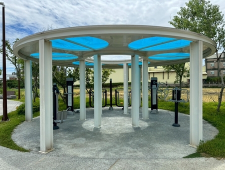 此外,沙坑區鋪上細礫石,適合幼童自由挖掘玩沙,也強化了場地排水與安全性。體健設施與休憩座椅則讓家長能在一旁陪伴放鬆。雖然目前尚未設有公廁,但園區照明與步道完善,晚上也適合散步遊玩。