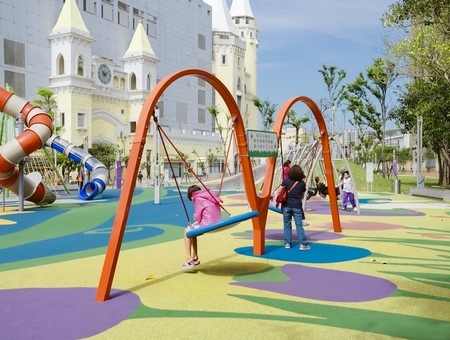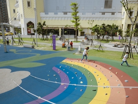 針對學齡前兒童,場內設有繽紛的地景式設施,包含色彩鮮豔的彩虹坡面、磨石子滑梯與共融式鞦韆,讓不同年齡與能力的孩童都能在安全的環境下盡情遊戲。