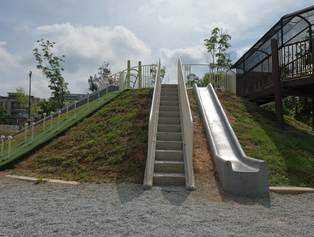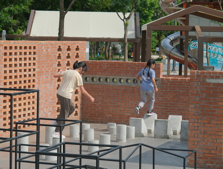設施安全與維護:部分遊具如磨石子滑梯與攀爬網設計具挑戰性,使用前請確認孩子適合;若攜帶小石頭等異物上滑梯,可能增加滑行危險