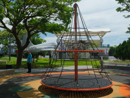 園區設計巧妙結合地形與軍事元素,如仿乳姑山地勢設計的滑梯坡道與壕溝障礙設施,不僅具挑戰性,也提升了整體遊戲體驗。同時,園內保留並展示多項退役軍事裝備,如M41戰車、F‑5E戰機、TH‑55C直升機、天弓飛彈等,讓大小朋友在遊憩之餘,也能學習台灣軍事歷史,寓教於樂。