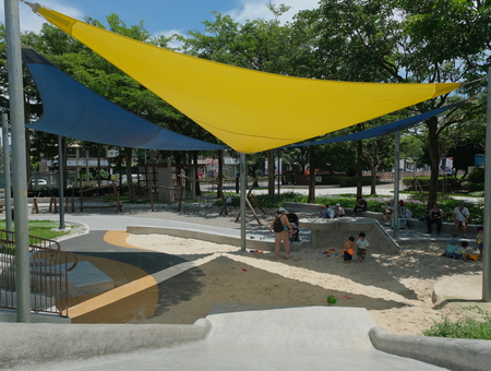 夏季限定的兒童戲水區亦是一大亮點。噴泉水柱、淺水池與定時灑水設計,讓孩子們在炎炎夏日中盡情玩水,現場也設有更衣間與沖洗設備,便利又安心。此區每年約於7至8月開放,為免費使用。