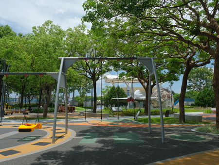 除了遊戲與戲水,園內也設有標準田徑場、籃球場、網球場、滑板場、體健設施與大片綠地草坪,適合進行運動、野餐與家庭活動。周邊亦有便利商家如星巴克、麥當勞、肯德基等,還可串聯三坑老街、客家文化館等周邊景點,輕鬆規劃半日或一日遊行程。